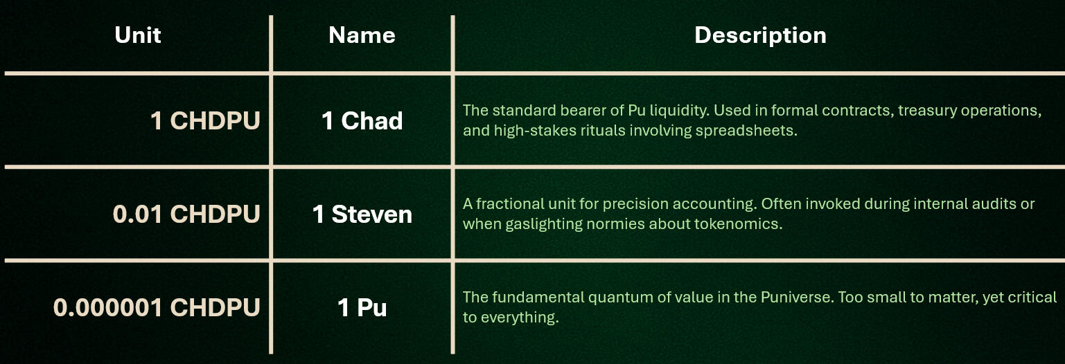 Forged in the crucible of Taraxa’s DeFi revolution and meme uprising, $CHDPU is the first memecoin ever bonded on Taraxa - a legend born from the iron will of believers in $TARA co-founder Steven Pu, the undisputed Chad of blockDAG.